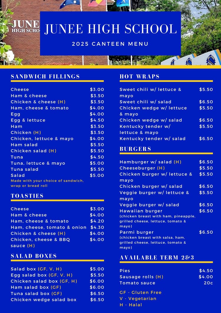2025 Canteen menu